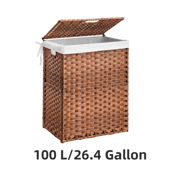 Hero image 0 of CASEMIOL 26.4 Gallon Laundry Basket with Lid, Rattan Clothes Laundry Hamper with Removable Liner Bag, Machine Washable Linen Bags, Foldable Large Laundry Basket, 0 of 13