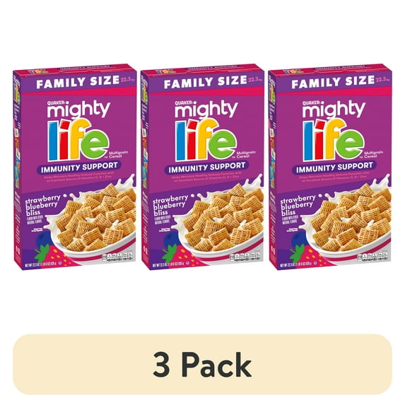 (3 pack) Quaker Mighty Life Cereal Mixed Berry, Family Size 22.3 oz