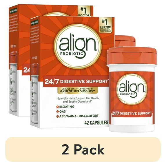 - 2-pack of Align Probiotic, 24/7 Digestive Support*, Probiotics for Women and Men, Probiotics for Digestive Health, Men and Womens Probiotic Capsules Help Relieve Occasional Bloating & Gas*, 42 Capsules