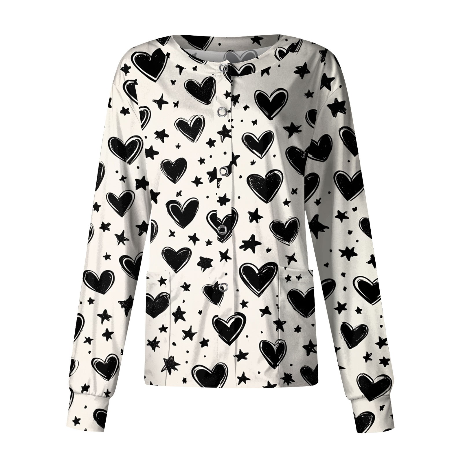 FrzhBrz Valentines Day Women's Scrub Long Sleeve Jacket Snap Front Cute Print Nursing Scurb Jacket Medical Shirts Tops