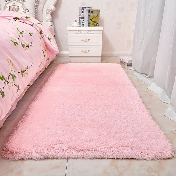 Pink Rug, Bedside Preppy Dorm Area Rug, College Essentials Non Slip Small Carpets for Bedroom, Anti Slip Fluffy Living Room Rugs Home Decor Aesthetic, Nursery (Pink)