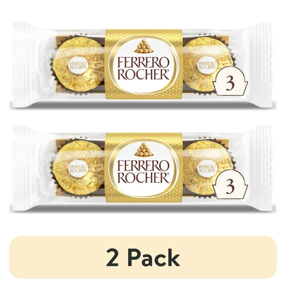 (2 pack) Ferrero Rocher, 1.3 oz, Fine Hazelnut Milk Chocolate, 3 Count, Individually Wrapped Chocolate Candy Gifts