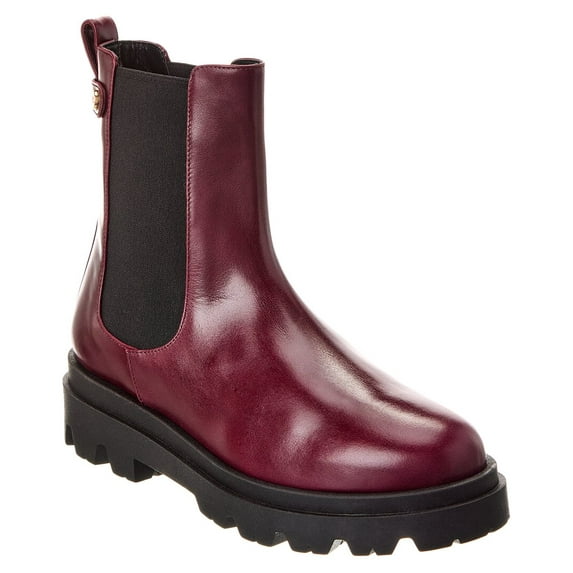 About the brand: Luxury leather goods with Italian roots. Alma Leather Boot in bordo leather and gold-tone hardware with logo accent and pull-on tab Elasticized slip-on style Lightly padded leather insole Rubber sole with traction 2in heel 1.5in platform 6.5in shaft 10in boot circumference Please note: All measurements are approximate and were taken from a size 8; slight variations may occur. Made in Italy