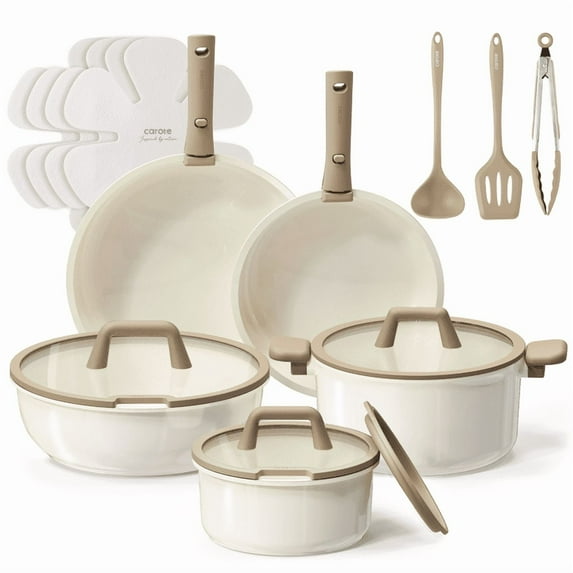 Carote 16 Pcs Ceramic Cookware Sets, Nonstick Pots and Pans Set W/ Detachable Handle, Oven & Dishwasher Safe, TaupeCarote 16Pcs Nonstick Cookware Sets Pots and Pans Set with Detachable Handle with Taupe LidCarote Nonstick Cookware Sets 11 Pcs Non Stick Pots and Pans Set with Removable Handle BlueCarote 16Pcs Nonstick Cookware Sets Pots and Pans Set with Detachable Handle with Dark Green Lid