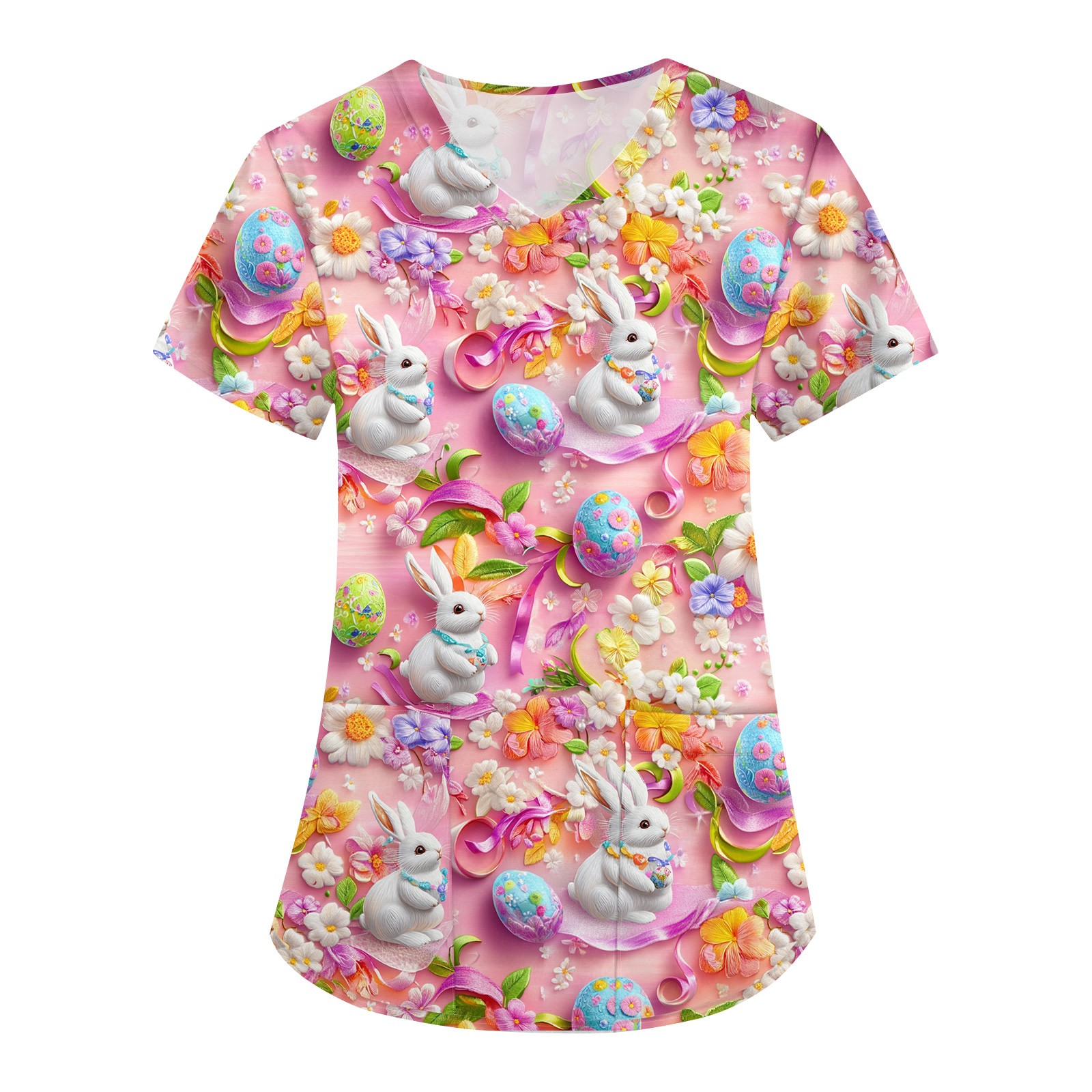 Women's Easter Day Scrubs Top Short Sleeve Plus Size Scrubs Nursing Uniforms for Women Stretch Nursing Medical Scrubs T Shirts with Pockets