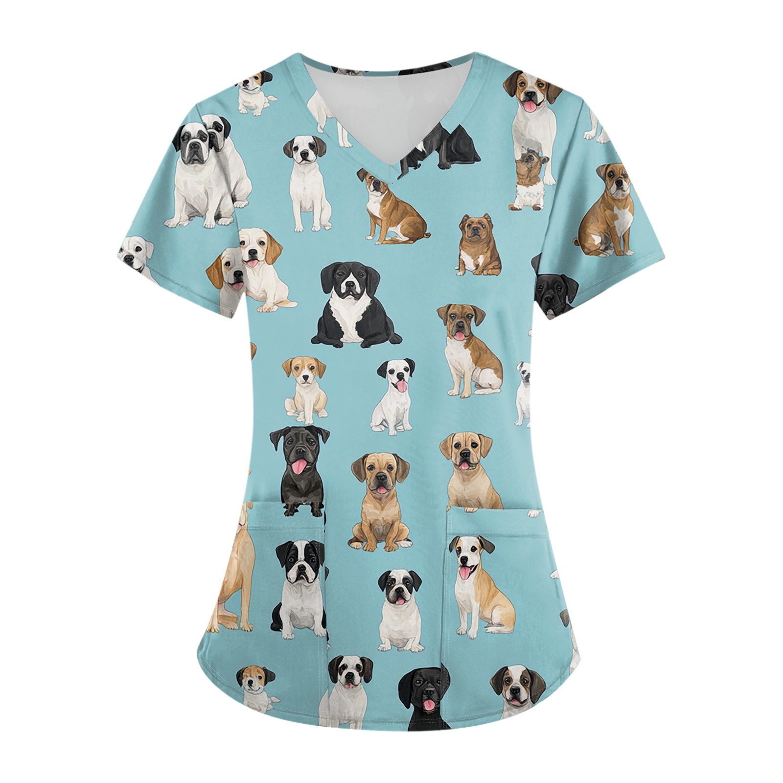 BDPORKAS Women Scrubs Nurse Uniforms Stretch Short Sleeve with Pockets Scrub Tops Characters Cartoon Cute Soft Nurse Tee