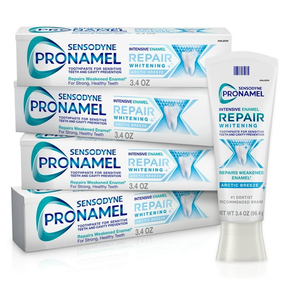 - Four 3.4 oz tubes of arctic breeze Sensodyne Pronamel Intensive Enamel Repair Toothpaste for Sensitive Teeth, Cavity Protection, Whitening Toothpaste