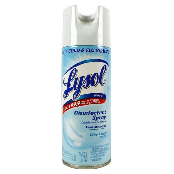 24.5 out of 5 Stars. 2 reviewsLysol Disinfectant Spray, Sanitizing And Antibacterial Spray, For Disinfecting And Deodorizing, Crisp Linen, 19 Fl Oz (Pack Of 4) $26.60 Was $31.98