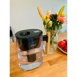 - BPA-Free Pitcher: BPA-free 10-cup water filter pitcher with a black lid for safe and clean drinking water.