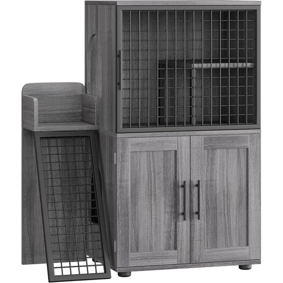 $12599current price $125.99Yesurprise Hidden Cat Litter Box Enclosure Modern Villa Cat Cabinet with Ladder Cat Washroom Indoor Cat House Grey