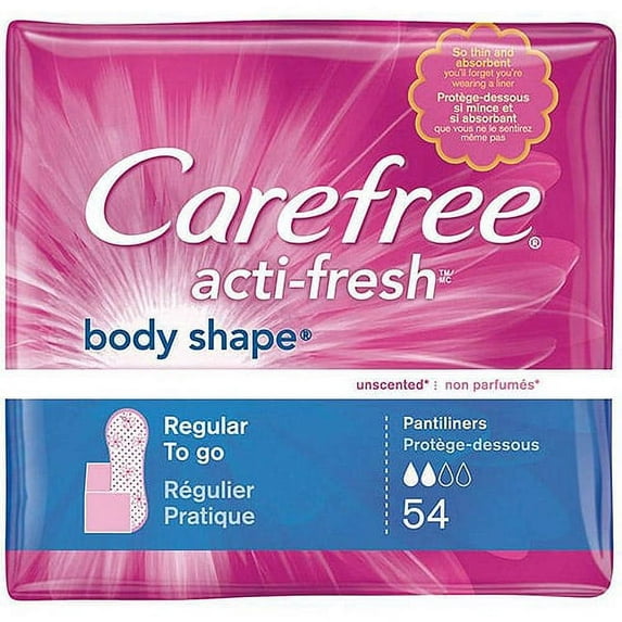 11 out of 5 Stars. 1 reviewsCAREFREE Acti-Fresh Body Shape Regular To Go Pantiliners, Unscented 54 ea (Pack of 2) $14.50