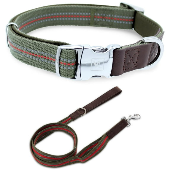 Hero image 0 of Vibrant Life Comfort Premium Reflective Dog Collar Medium and 6ft Leash, Metal Buckle, Olive Green, Size Medium, 0 of 4