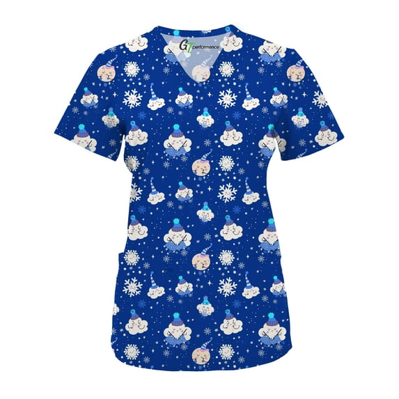 Hero image 0 of Green Town Scrubs for Women V-Neck Scrub Top - Christmas Thanksgiving Halloween Holiday Prints, 0 of 5