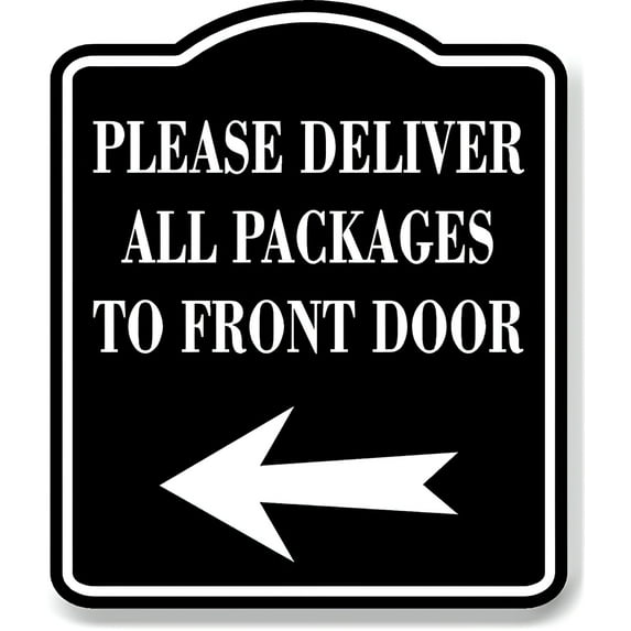 Hero image 0 of Please Deliver All Packages To Front Door Left BLACK Aluminum Composite Sign, 8.5"x10", 0 of 1