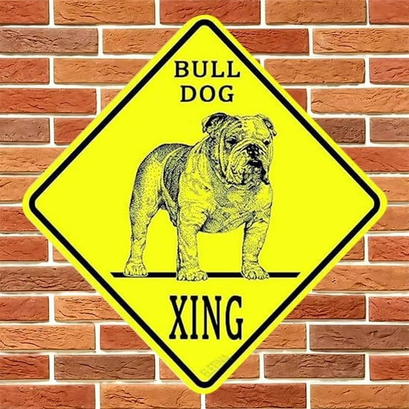 Wall Art Plaque English Bulldog Xing Caution Warning Crossing Sign Yard Decoration Signs Outdoor & Indoor Aluminum Metal Tin Sign 8 X 8 Inch