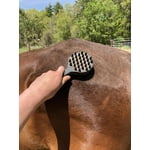 The Curry On A Stik' is a game-changer for grooming sessions! The ergonomic handle is easy to hold and flip from one side of the curry to the other. It's so convenient to have two types of curry on one grooming tool, which makes grooming easier. I have also found the coarser rubber side super helpful during shedding season as it easily removes loose hair and dander. Plus my sensitive TB doesn't get irritated by the bristles like he does with some curry's I have tried in the past. This is a must have for any horse owners grooming kit!