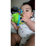 Instantly he loves it easy for him to grab. He's absolutely interested. It's a rattle and teether. It definitely has his attention. I love this for him.