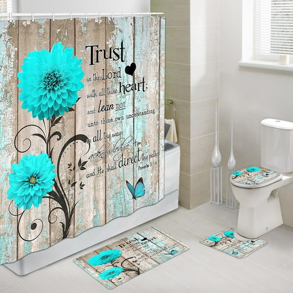 $4599current price $45.99Rustic Farmhouse Shower Curtain Set with Hooks, Bathroom Sets with Shower Curtain and Rugs, Toilet Lid Cover and Bath Mat, Turquoise Dandelion with Bathtub Bathroom Shower Curtain Set