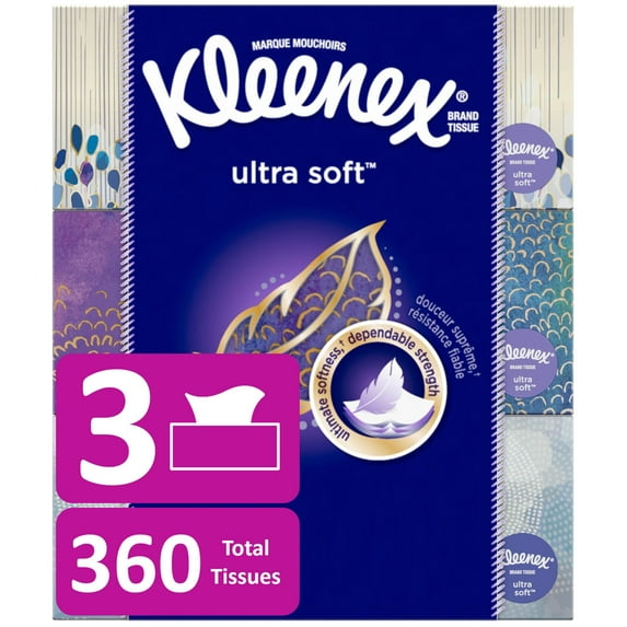 $862current price $8.62Kleenex Ultra Soft Facial Tissues, 3 Flat Boxes, 120 Tissues per Box, 3-Ply