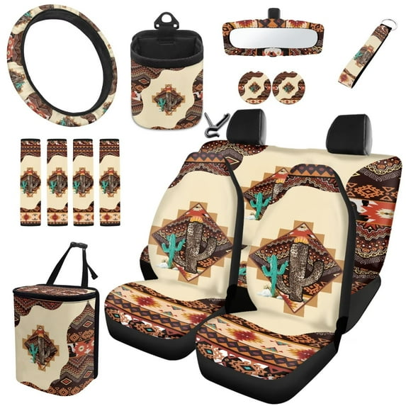 Hero image 0 of Garronmavis Car Front Seat Cover Rear Split Bench Cover Steering Wheel Cover Seat Belt Cover Air Vent Car Organizer Car Trash Can Rearview Mirror Cover Coasters Keychain 15pcs Southwest Aztec Cactus, 0 of 7