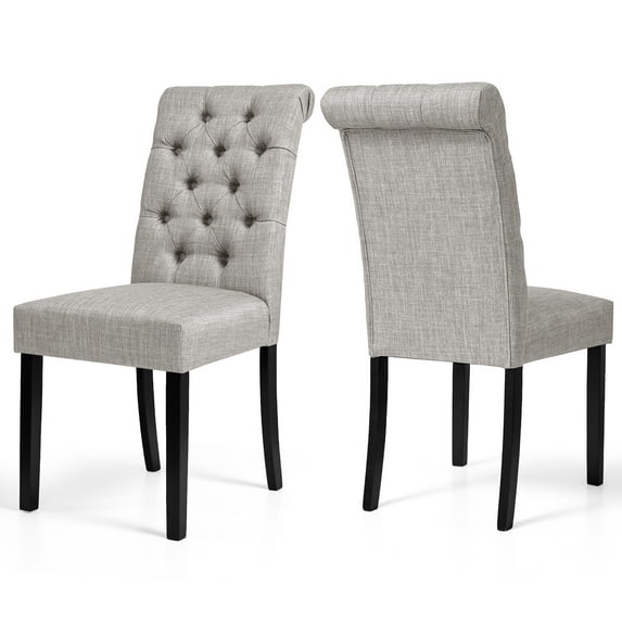 Subrtex Upholstered Dining Chair with Scrolled Back and Button Tufting, Modern Fabric Kitchen Side Chair (Set of 2, Light Gray)