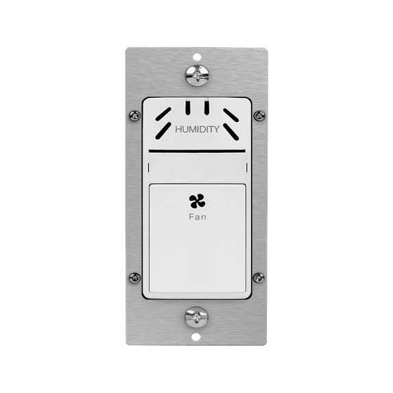 - Neutral wire required; single-pole use only; 120VAC; 3A maximum fan load; 45%-80% humidity range; 1-year warranty; UL-Listed
