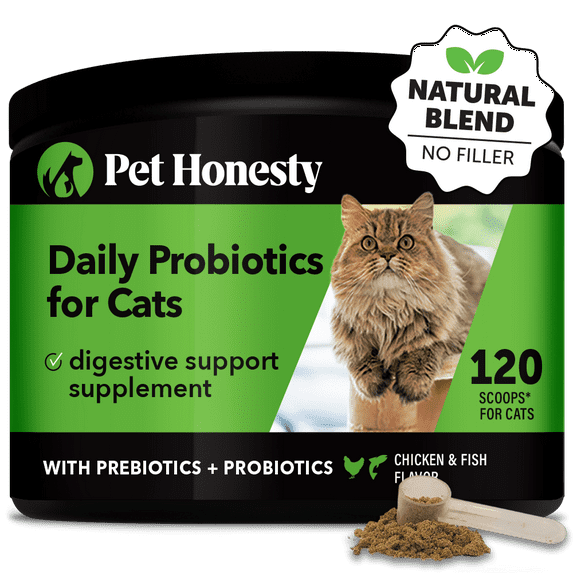 Pet Honesty’s Digestive Probiotics Powder for cats is naturally and deliciously flavored with real chicken and fish and is an easy, vet-recommended way to help support healthy digestion and immune response in your cat. It’s made with natural ingredients and no chemical fillers or preservatives.