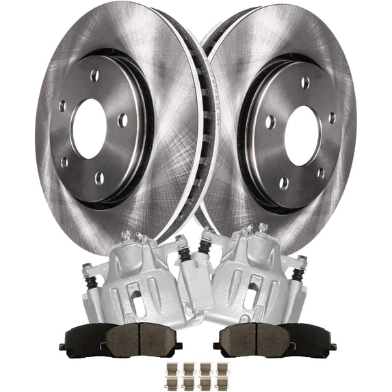 - Brake Kit Includes: 2x Front Disc Brake Rotors + 2x Front Brake Calipers w/Brackets + 2x Front Ceramic Brake Pads w/Hardware