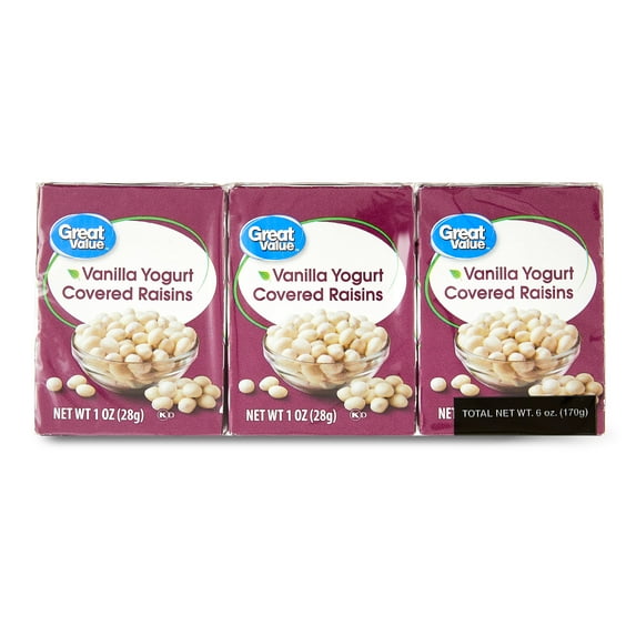 Great Value Vanilla Yogurt Covered Raisins,1 oz, 6 Count