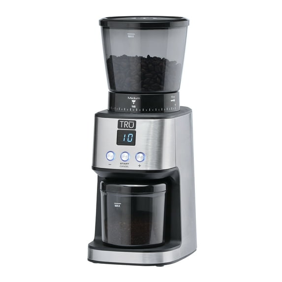TRU Conical Burr Grinder - Precision Coffee Bean Grinder with 30 Grind Settings - Adjustable Grind Time & Digital Countdown - 20 oz Bean Hopper for Espresso & Drip Coffee