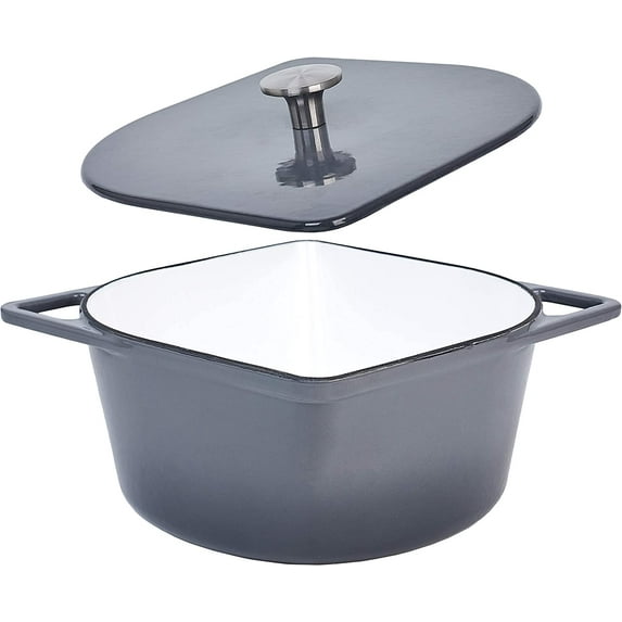 3 Quart Cast Iron Enameled Dutch Oven Modern Squoval Shaped Design, with Stainless Steel