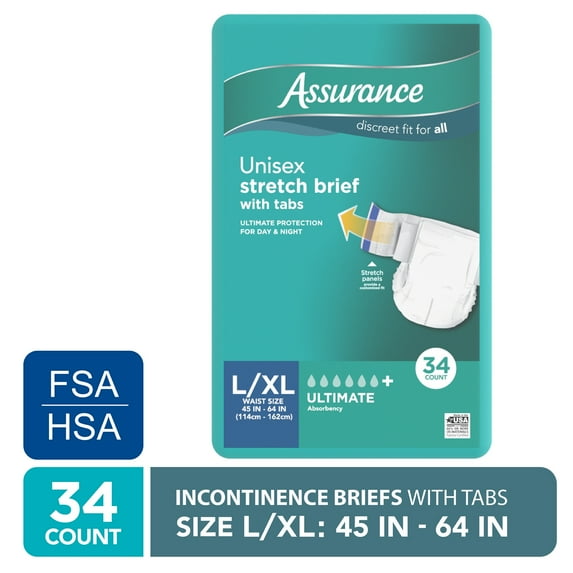 Hero image 0 of Assurance Unisex Stretch Briefs with Tabs, L/XL, 34 Count, 0 of 7