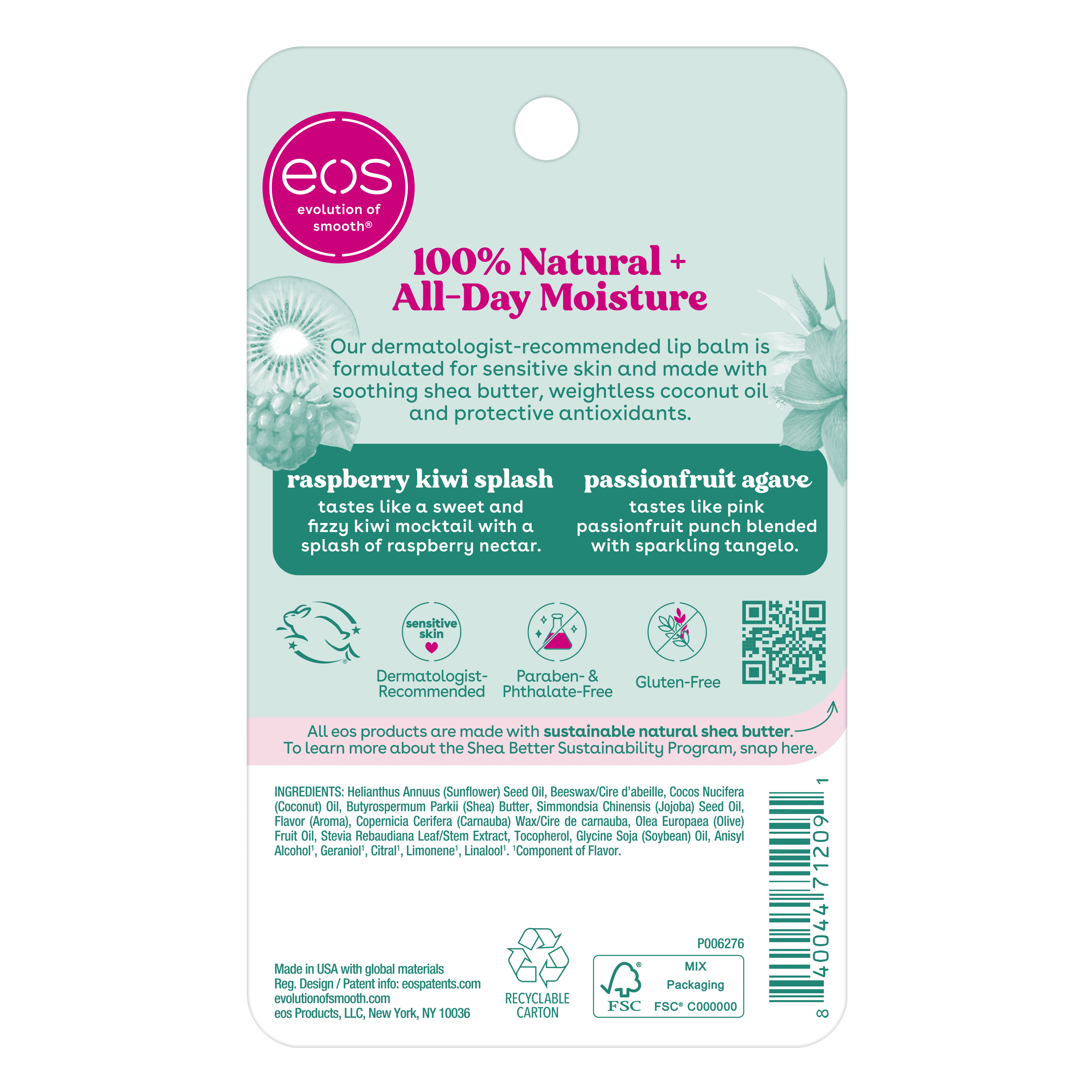 eos 100% Natural Lip Balm, Raspberry Kiwi & Passionfruit Agave, All-Day Moisture, 0.14 oz, 2-Pack