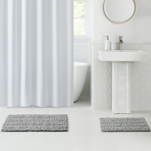 Mainstays Textured Chenille High-Low Noodle Bath Rug Set, Soft Silver, 2 PiecesMainstays Textured Soft Silver Chenille Polyester Bath Rug Set 2 PieceMainstays Textured Black Chenille Polyester Bath Rug Set 2 Piece