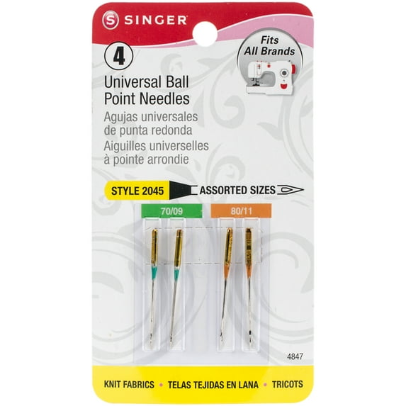 For use on all household sewing machines. Slide between the yarns of knit fabrics without snagging with a rounded tip.