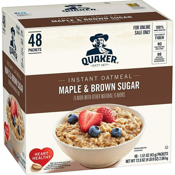 Hero image 0 of Quaker Instant Oatmeal, Maple & Brown Sugar, Individual Packets, 48 Count, 0 of 6
