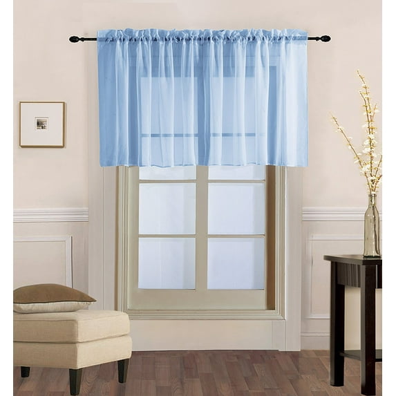 Hero image 0 of Decotex 1 Piece Sheer Voile Rod Pocket Multi Use Straight Window Curtain Valance Topper (55" X 18", Light Blue), 0 of 1