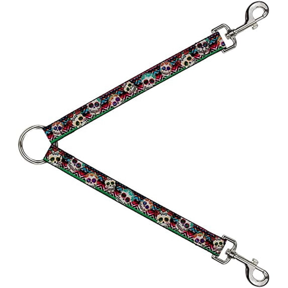 Buckle-Down Dog Leash Splitter Sugar Skulls Zarape Multi Color 1 Foot Long 1 Inch Wide