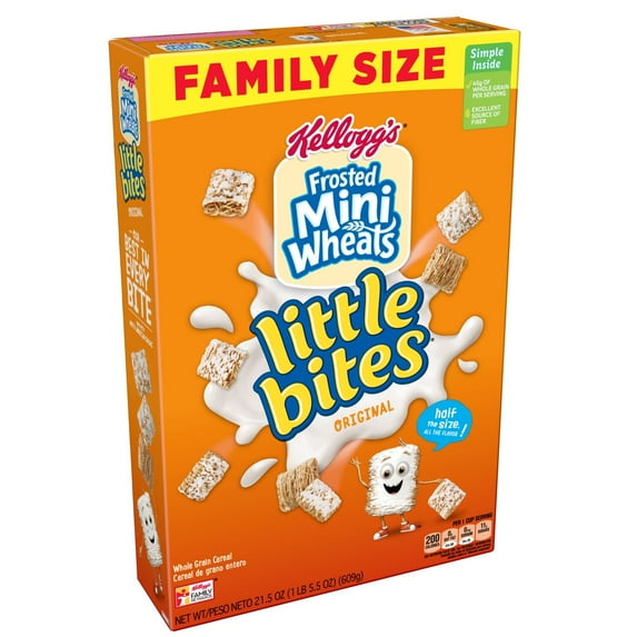 3 optionsAvailable in additional 3 options$448current price $4.48, Was $4.98$4.9822.2 ¢/ozKellogg's Frosted Mini-Wheats Little Bites Breakfast Cereal, Kids Cereal, Family Breakfast, Family Size, Original, 20.2oz Box (1 Box)