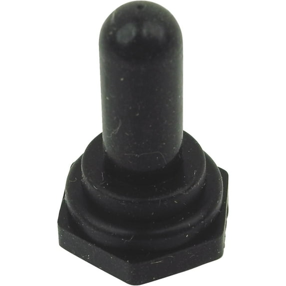 Fits standard toggle switches with 15/32", 32 mounting stem. Accomodates toggle handles through 11/16" long. Protects against moisture and dirt. Completely covers toggle handle. Black with hand nut. Brass threads.