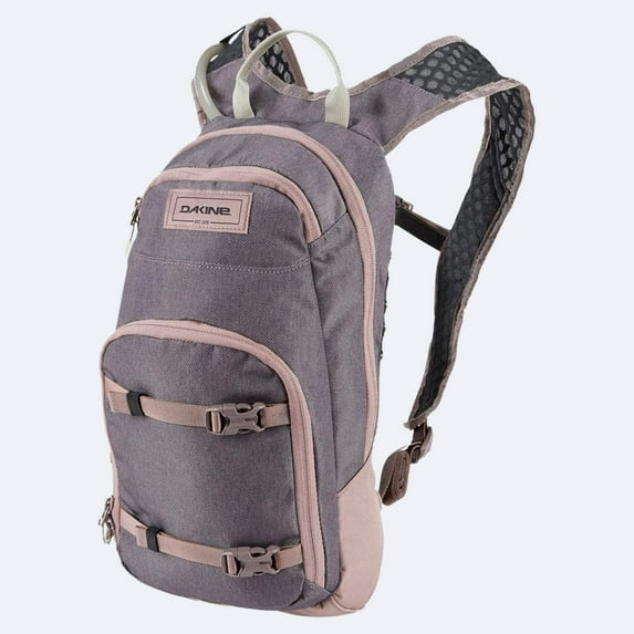 When you're a minimalist, just the essentials, kinda gal, the Dakine Women's Session 6L Hydration Pack carries just what you need in a streamlined, compact, bike-friendly, carry. A 2-liter hydration pack with a Hydrapak® reservoir and Phaser bite valve you have no excuse for not keeping yourself properly hydrated on the trail! The Airmesh back panel and shoulder straps are breathable for a comfortable pack even in the heat. A fleece lined pocket keeps sunglasses or cells protected, and there’s even a dedicated pocket for your pump. Enough space for a snack, your 70 oz reservoir, and a small repair kit, all in a compact carry that won't weigh you down or get in the way. It even has a light loop for a blinker for road commuting and a whistle on the sternum strap. It's designed to carry everything you need for fast and flexible rides, and nothing you don't, while being sized right for a woman's smaller shoulder width and shape. Get out there and ride happy with the tools you need to keep your wheels on the trail, and the hydration you need to keep you going long and strong!