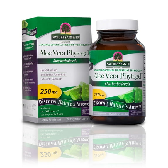 - Nature's Answer Aloe Vera Phytogel Once Daily Single Herb Supplement contains 250mg of high quality Aloe Vera gel.