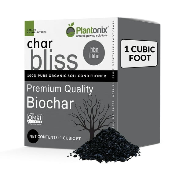 100% Natural Soil Amendment for Plants - Plantonix Char Bliss is an organic soil conditioner that’s been ethically harvested from wood and tree trimmings. Biochar provides a number of benefits for indoor plants and outdoor plants, such as enhanced nutrient availability, soil fertility, and water retention, all while promoting carbon sequestration.
