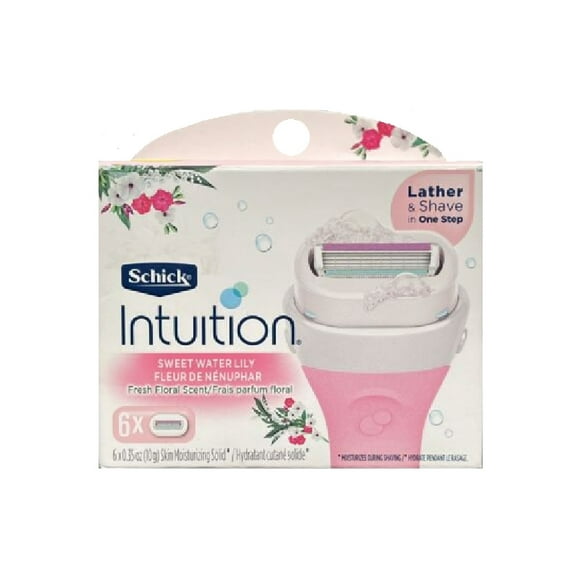 Schick Intuition Sweet Water Lily Fresh Floral Scent Refill Razor Blade Cartridges, 6 ctSchick Intuition Sweet Water Lily Fresh Floral Scent Refill Razor Blade Cartridges 6 ctSchick Intuition 4 Blade Sweet Water Lily Women s Razor Blade Cartridge Refills 6 Ct Lather Shave In One Step Fresh Floral Scent
