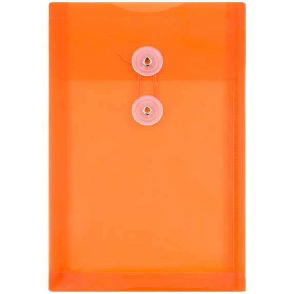 Hero image 0 of JAM Paper Plastic Envelopes, 6.3x9.3, 12/Pack, Orange, Button String, Open End, 0 of 4
