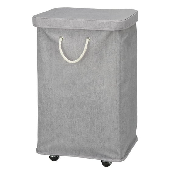 current price $41.99mDesign Large Polyester Rolling Laundry Hamper with Wheels, Lid, Handles, Gray