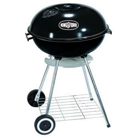Features-Kingsford 18 in. Round kettle grill. Durable porcelain coated fire bowl. Chrome plated cooking grate. Bottom rack for extra storage. Stainless steel legs. Dimension - 18.9 l x 8.27 w x 18.9 h in. Item weight - 19 lbs. SKU: TRVAL70106. Kingsford® Round Kettle Grill features chrome plated cooking grate that provides over 250 square inches of space for grilling up steaks, burgers, kebabs, or other favorites when gathering with friends and family. It also comes with a porcelain-coated ash can that collects ash from the kettle and empties in seconds with no need for getting hands dirty.Size: 18Durable porcelain coated fire bowlChrome plated cooking grateBottom rack for extra storageStainless steel legs.