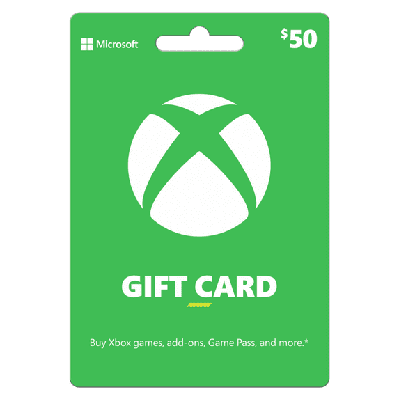 ![Xbox $50 Gift Card [Physical]](https://i5.walmartimages.com/seo/Xbox-50-Gift-Card-Physical_7eb7db32-a67a-4dc7-8b04-2f7630499310.93a91a9bb24fdbb9cec1e6a52feda871.png?odnHeight=573&odnWidth=573&odnBg=FFFFFF)