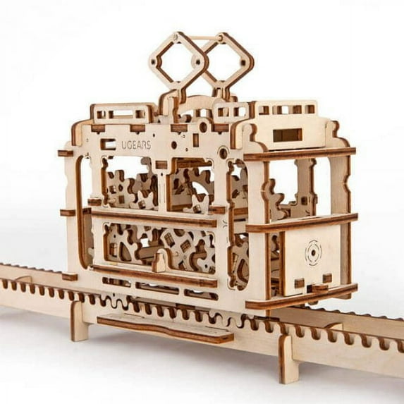 Hop on this delightful retro streetcar for a ride to remember. Ugearsmodels Tram on Rails is by far one the most romantic models in our catalog. Inspired by the earliest streetcars and funiculars, like other Ugearsmodels vehicle models, it features a wind-up rubber band motor. With the rails in level mode watch the Tram clatter to its destination or raise one side of the tracks and watch the gear-driven transmission control the Tram?s gentle descent.The Tram includes a hidden box to hold secret messages for that special passenger waiting at the next stop.