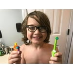 The Equate Kids EasyFlex Total Power Toothbrush has been a huge hit with our child especially because it was green. He was initially hesitant because of the noise from the motor, but he warmed up to it once he tried a few times. It is far easier to use than a traditional toothbrush because we no longer need to scrub back and forth as much. Our dentist recommended gently pushing the brush head against the tooth for a couple seconds and then moving on to the next teeth. It is very easy to change the brush heads and the batteries. The batteries last for a long time so that is a huge plus. It also comes with two brush heads. We are still on the first one even after months of use. This was more comfortable for our son because he didn't have to keep his mouth open as long. I do wish that the toothbrush was smaller. It is hard for him to to use because of how long it is. Adults would not have a problem with it. It would be a bonus if there was a two minute timer on it so that we know that we have brushed long enough.